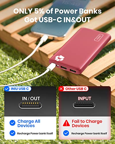 - Only 5% Got USB-C IN&OUT: INIU is the only 5% of power banks got a USB-C IN&OUT port. Unlike others only recharge via USB-C port, INIU can charge all devices with your USB-C cables directly.